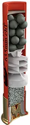 Cartucho carregado com bagos múltiplos de chumbo, fabricado com matérias-primas de alta qualidade, garantindo segurança, precisão, confiabilidade e alto desempenho.